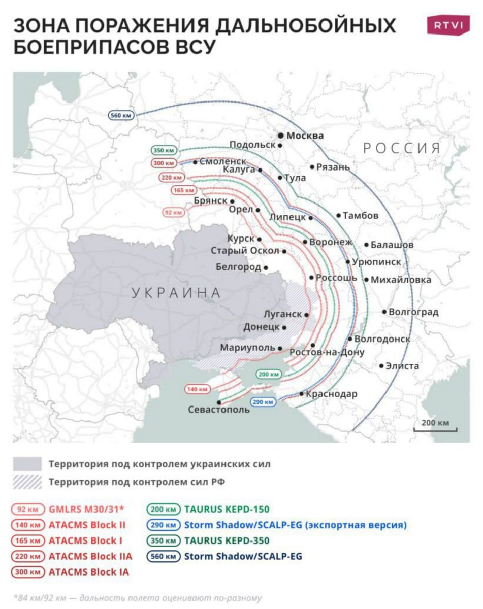 Москва, предположительно, попадает в зону поражения западного дальнобойного оружия, переда