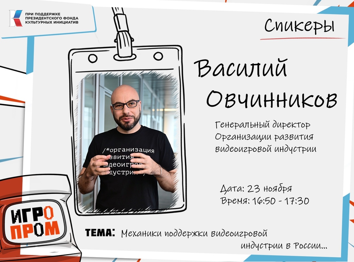 Василий выступит на тему: Механики поддержки видеоигровой индустрии в России