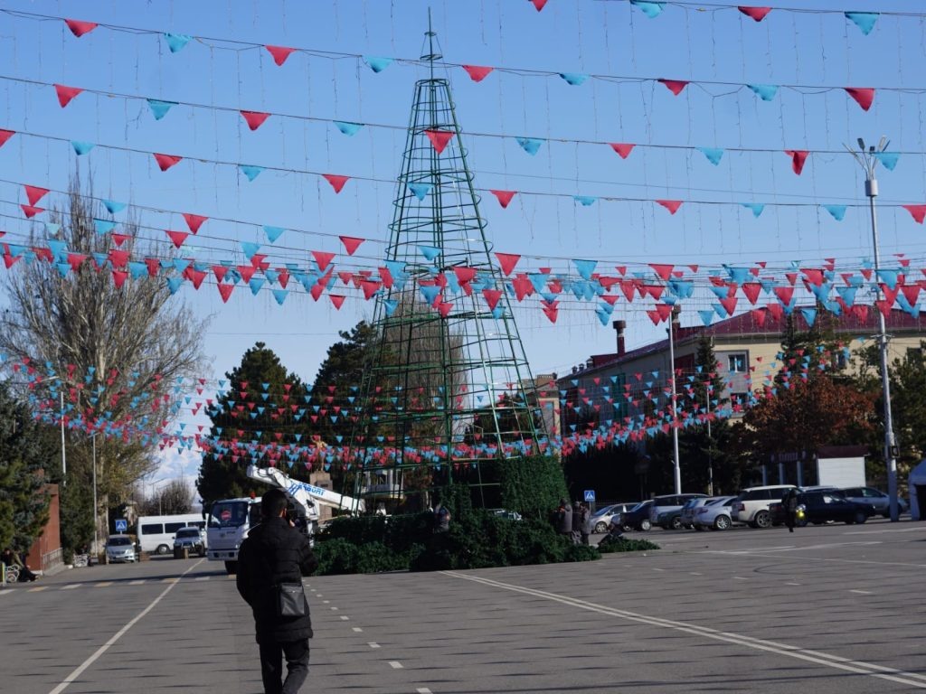 🎄 Каракол шаарында жаңы жылдык балаты орнотула баштады.