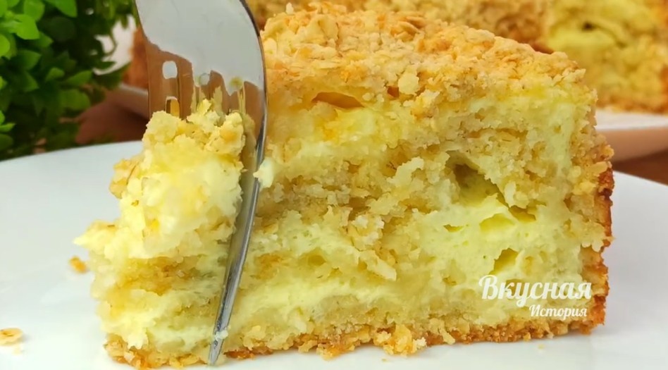 Всем здравствуйте. Что вы обычно готовите из овсянки? У меня все банально. Я готовлю на завтрак кашу , ну и иногда овсяноблин, во время очередного своего похудения)) Но сегодня хочу предложить вам приготовить, вкусный-вкусный пирог из овсянки, без теста. Честно говоря, когда я впервые увидела этот рецепт, отнеслась к нему скептически, мне показалось, что получится ерунда)) Но результат меня удивил, пирог получился очень нежный, воздушный, ароматный и вкусный. Не нужно замешивать тесто, ждать пока оно постоит, готовится все очень быстро и просто. Список ингредиентов и видео, вы найдете в конце⤵ Так как все готовится очень быстро, сразу включаю разогреваться духовку при температуре 180 градусов. В миску просеиваю муку. Добавляю холодное сливочное масло, нарезанное кубиками. Руками растираю в крошку. Добавляю разрыхлитель Добавляю овсяные хлопья, хлопья беру быстрого приготовления, которые готовятся за две-три минуты. Сахар И хорошо все перемешиваю. Получилась основа для нашего пирога. Т