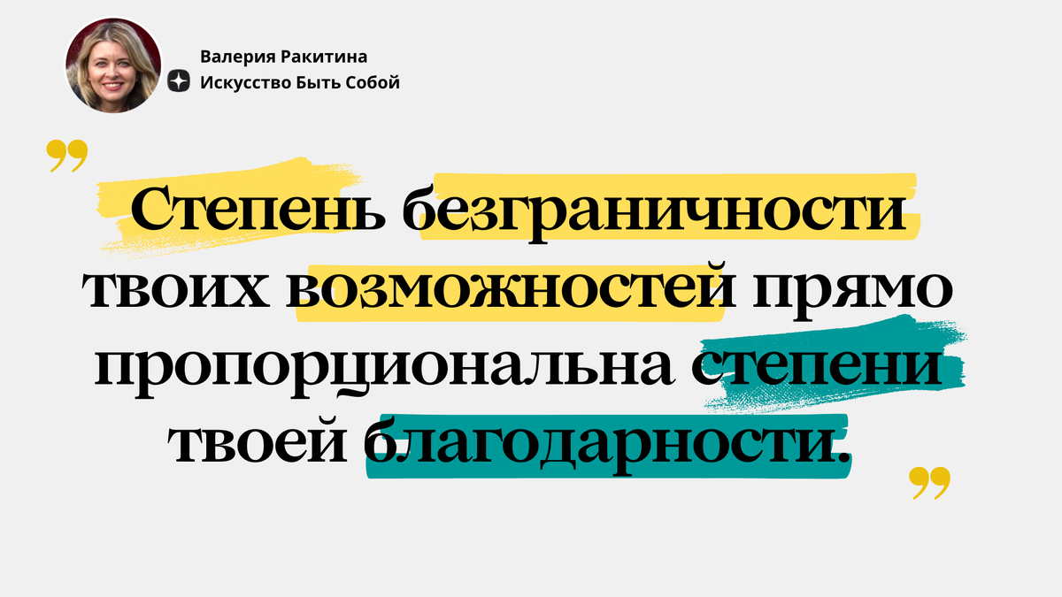 Степень безграничности возможностей прямо пропорциональна степени твоей благодарности.