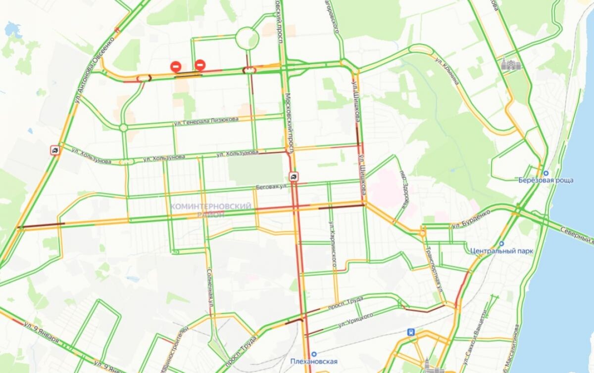 Согласно информации сервиса, общая дорожная обстановка по городу оценивается в 4 балла. Проблема с заторами присутствует местами в Северном и Центральном районах города.