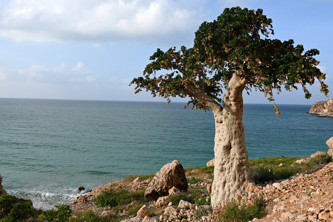 Привет, мои дорогие любители необычной земной природы. Сегодня у нас ботанический выпуск, в котором я расскажу о дереве, которое не должно быть деревом, и которое живёт на острове, на котором не должно было жить 😁 Взгляните на эту красоту на фото выше. Перед вами Сокотра, о которой я уже писал. Это уникальный остров, который является главным в одноимённом архипелаге, расположенном между Аравийским полуостровом и полуостровом Сомали. Сокотра является своего рода Галапагосами Старого Света, местом, где в условиях изоляции образовались или сохранились виды, которых нельзя встретить за пределами архипелага. Тут и произрастает наш сегодняшний герой – огуречное дерево (Dendrosicyos socotranus). И в данном случае название дерева не метафорично, так как оно на самом деле принадлежит семейству тыквенные, тому же, которому принадлежат огурцы. Это единственный представитель тыквенных, который имеет форму дерева. И, что примечательно, если взглянуть на фото выше, расти эти деревья могут в довольн