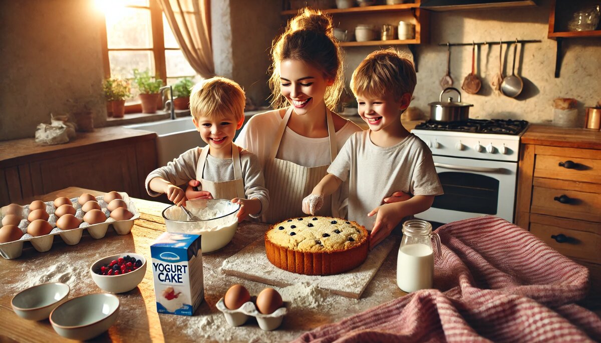 Недавно у нас с Максом и Мишей состоялось кулинарное открытие! Увидела я один рецепт йогуртового пирога – легкий, без заморочек с весами и точными мерками. Поняла: это то, что можно сделать всей семьей, и, что самое главное, дети смогут активно участвовать. Дело было утром, пока маленькая Даша еще сладко спала. Макс взял табурет, гордо встал рядом со мной и объявил, что будет поваром. Миша, конечно, не отставал, требовал, чтобы ему тоже дали «задание». Мы достали баночку йогурта и начали. Оказывается, в этом рецепте она – главный измерительный прибор!