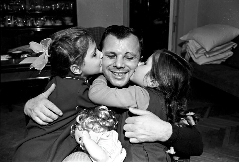 Когда родилась первая дочь, он сам купал Леночку, пеленал, качал на руках, пел тут же придуманные колыбельные песни... Когда родилась вторая дочь, Юрий Гагарин был в командировке, а вернувшись, был просто счастлив. Он решил назвать дочь весенним именем «Галчонок», носил её на руках и напевал: «Галя, Галинка, милая картинка…» Гагарин старался воспитывать своих дочерей в атмосфере любви и поддержки, передавая им важные жизненные ценности и свою бесконечную тягу к знаниям и открытиям. Юрий Алексеевич, как ответственный и чуткий отец, всегда поощря