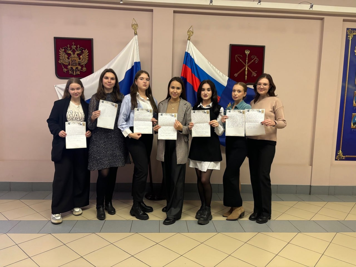 Студенты института и участники Волонтерского клуба Санкт-Петербургского юридического института (филиала) Университета прокуратуры РФ написали письма военнослужащим-участникам специальной военной операции и передали их в Благотворительный фонд «Время помогать» для последующей отправки вместе с грузом дополнительного имущества. Письма студентов наполнены теплом, словами благодарности и пожеланиями вернуться домой целыми и невредимыми.