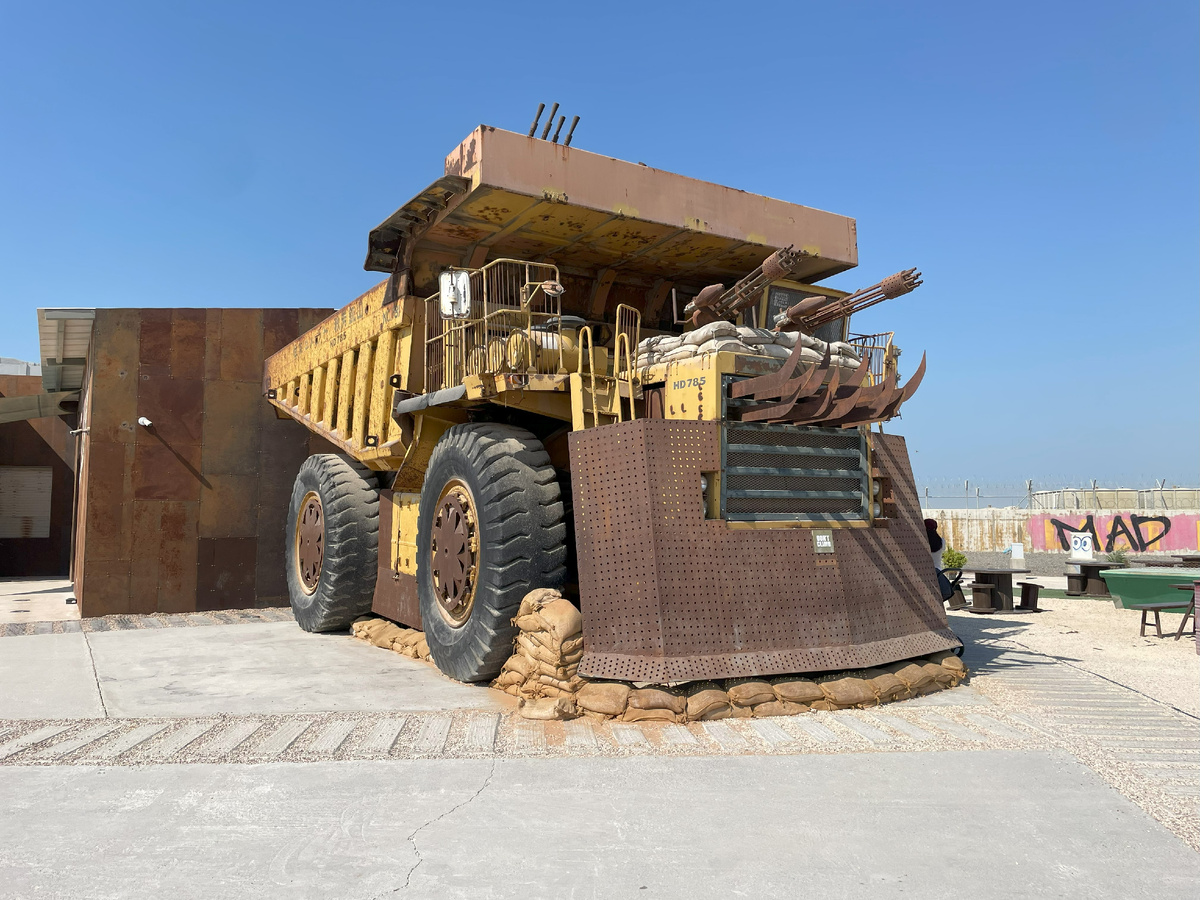 Знаменитый педагог и мотиватор Дейл Карнеги любил повторять: «Если жизнь подкинула тебе лимон, сделай из него лимонад». Действительно, если хочешь добиться успеха или удивить окружающих, главное — верить в себя и не замечать препятствий. Вот, казалось бы, что можно придумать на пустынном участке земли вдоль автомобильной трассы? Если подыскать инвесторов, можно построить, например, АЗС или кафешку. Если добавить к этому креатива, реально на пустом месте создать место, о котором случайно проезжающие мимо автомобилисты будут с восторгом рассказывать друзьям и близким, запуская сарафанное радио. Примерно в 40 километрах от Дубая по трассе E-11 в сторону Абу-Даби есть замечательный Last Exit. По сути, это пространство можно назвать АЗС с кафетерием и фуд-траками, а по большей части это игровая площадка для взрослых. Для тех из нас, кто взрослел, играя в «Фоллаут» и засматриваясь «Мэд Максом». Для каждого, кто через всю жизнь пронес любовь к автомобилям. Кто-то назовет Last Exit тематически