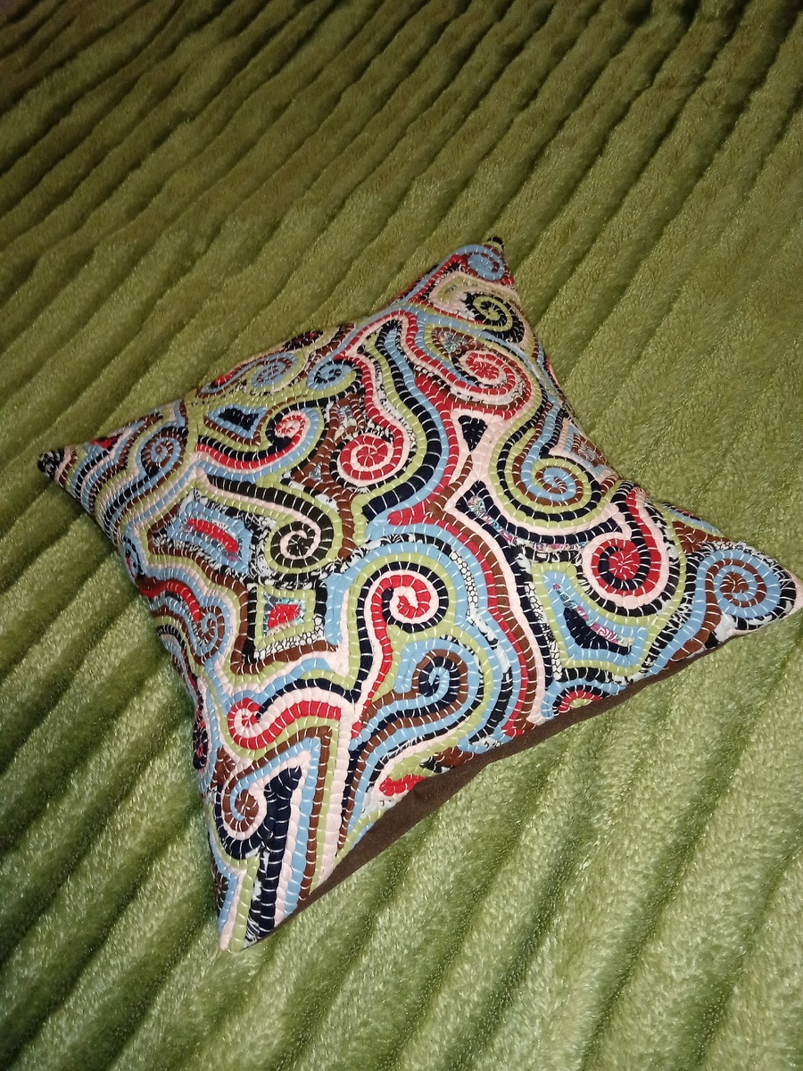 Оригинальная декоративная подушка с вышивкой трикотажными полосками