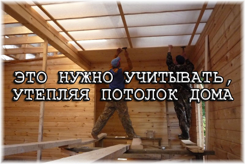 Широко известен тот факт, что дерево обладает хорошей теплоизоляцией и не позволяет в вашем доме скапливать чрезмерное количество влаги. Однако если стены в доме строятся из цельных брусьев, плотно скрепленных между собой, то потолки составляются из различных материалов, соединенных по принципу «небольшой вентиляции». Конечно в летнее время — это довольно уместно, но при желании жить в доме зимой, следует позаботиться о дополнительном утеплении. Если приступаете к отделке самостоятельно, строго соблюдайте технологию, поскольку незначительные отклонения от норм, могут повлечь негативные последствия, которые зимой будут как на ладони. Например, всегда следует помнить то, что теплый воздух всегда стремится вверх, и, если вы плохо утеплите потолки и в них останутся воздушные подушки, то воздух пойдет к крыше и, вследствие конденсата пара, превратится зимой в ледовое покрытие, что может нанести вред вашей крыше. Вообще, утепление потолка лучше делать после завершения процесса теплоизоляции