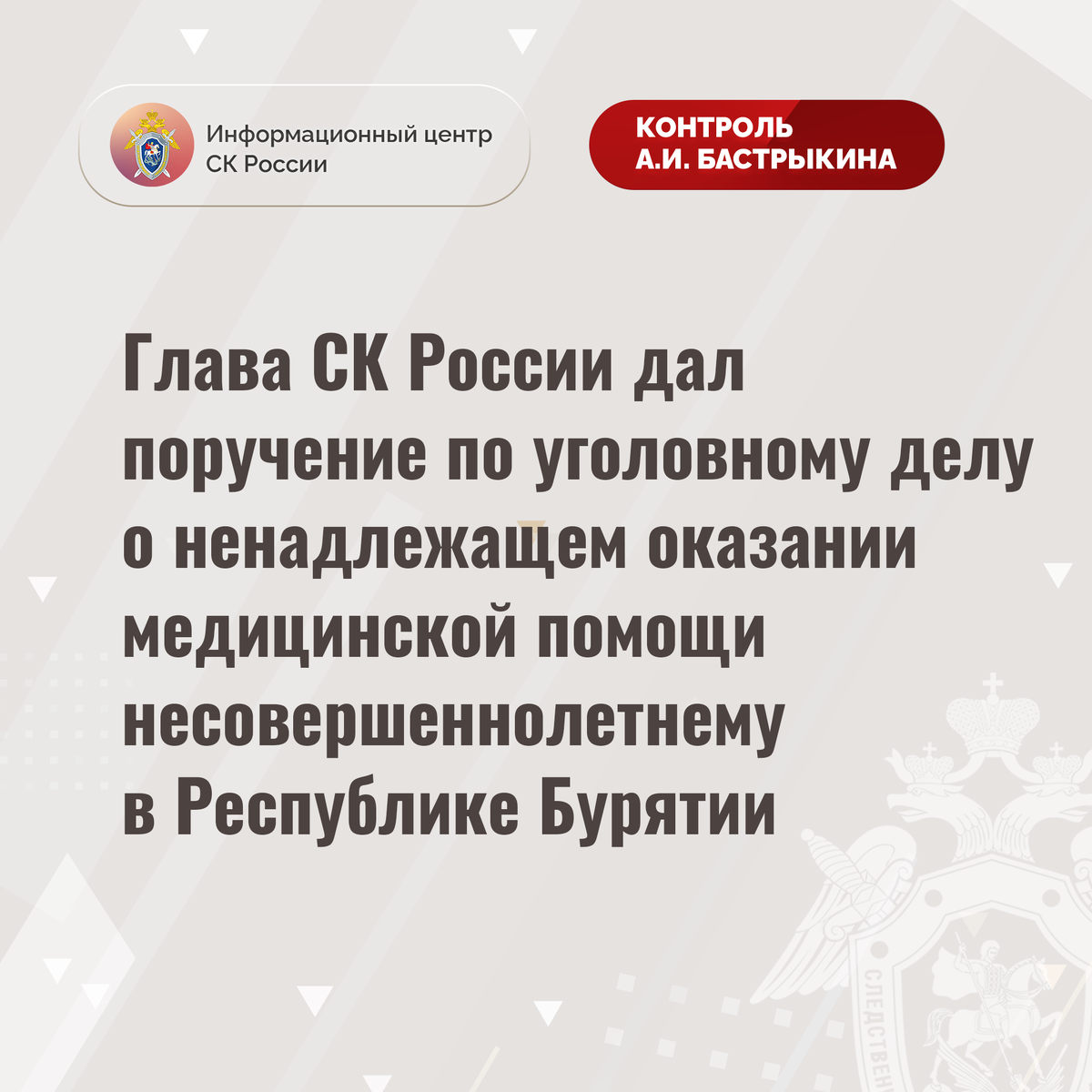 Глава СК России дал поручение по уголовному делу о ненадлежащем оказании медицинской помощи несовершеннолетнему в Республике Бурятии