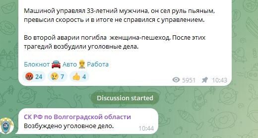 Обращаем ваше внимание, что у СУ СК России по Волгоградской области только один официальный аккаунт в данном мессенджере — t.me/sledkom_vlg. Будьте бдительны, не доверяйте непроверенным источникам! — гласит официальное сообщение ведомства.