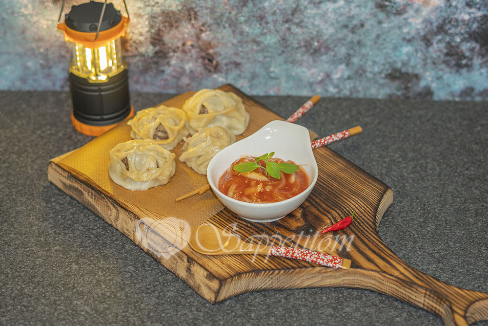 Традиционно манты подают обязательно с соусом. Выбор соусов достаточно большой. На наш вкус томатная заправка с луком самый интересный вариант. Такой соус придает мантам особую сочность и пикантность. лук репчатый - 3-4 шт.