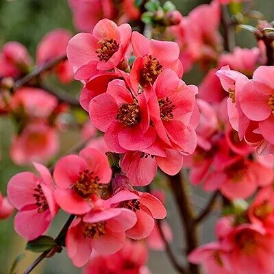 Размер и форма: Кустарник высотой 70 см - 1 м, колючие побеги. Листва: Плотныe, блестящие, ярко-зеленые листья (до 7,5 см), красноватые при распускании, осенью багряные. Сезонная смена цвета листвы добавляет декоративности. Цветение: Май, продолжительность 20 дней, крупные розово-белые цветки, обильное цветение (покрывают ветки). Требования к условиям: Светолюбива, предпочитает легкие, богатые органикой почвы, но переносит и более бедные, кислые почвы. Скорость роста: Зацветает в трехлетнем возрасте.