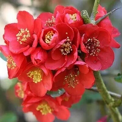 Размер и форма: Раскидистый кустарник, высота 1-3 м. Быстрый рост. Долговечен. Листва: Темно-зеленые, блестящие листья, красноватые при распускании. Цветение: Май, одновременно с распусканием листьев. Ярко-красные, простые цветки (3-5 см в диаметре), собраны в кисти (2-6 шт.). Плоды: Диаметром около 5 см, зеленые, при созревании светло-желтые. Уход: Засухоустойчива. Хорошо переносит стрижку. Морозостойка (но возможны подмерзания концов побегов в суровые зимы). Использование в ландшафтном дизайне: Подходит для одиночных и групповых посадок, создания бордюров, опушек и каменистых горок.