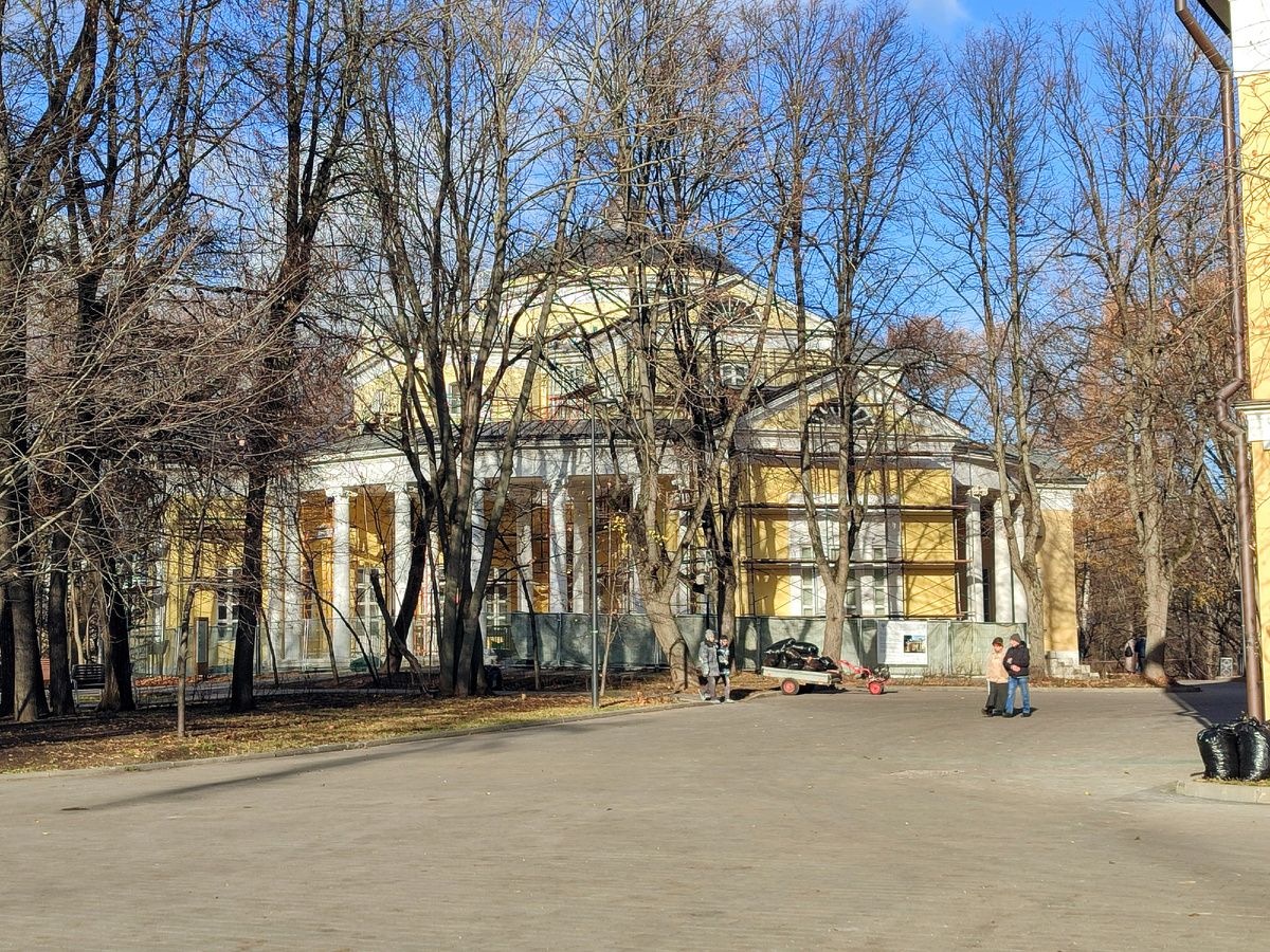 Главная изюминка усадьбы Люблино, естественно, барский дом. Необычной архитектуры. Ведь как дворцы строились. Большие и малые. Длинная анфилада. Все комнаты- проходные. Ну ладно- парадный зал проходной. Ну кабинет- куда ни шло. Но ведь и спальни господские- тоже проходные. И сортиры, наверное, тоже. Хотя где во дворцах старых сортиры были- тайна. Попробуйте у экскурсовода спросить: покажите где туалетная комната господская была? В лучшем случае промолчит. Покраснев. В худшем- обругает. И охрану вызовет. А тут- и изящно. И функционально. В центре цилиндрическое ядро. Увенчанное шатром. Там, как бы, общая зона. От него крестообразно четыре пристройки. Отдельное изолированное пространство для членов семьи. Или гостей. Концы крестовых пристроек колоннадой соединены. Везде пишут. Мол ничего оригинального в этом архитектурном решении нет. Мол, Такая планировка восходит к проектам итальянского зодчего А. Палладио. И, в качестве примера, приводят виллу «Ротонда». Недалеко от Винченцы. Находите