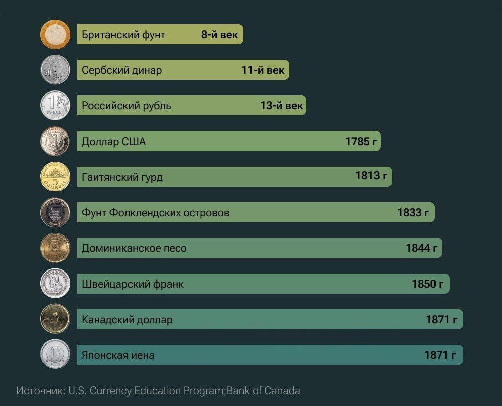 Фунт стерлингов, появившийся примерно в 775 году, — это одна из самых древних валют, которая до сих пор находится в обращении. С появлением евро в 1999 году ушли в прошлое такие исторические денежные единицы, как немецкая марка, французский франк и итальянская лира.