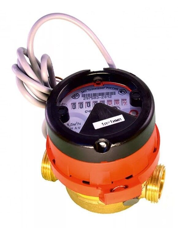 Механическая часть счетчика с импульсным выходом не отличается от устройства обычных фланцевых или крыльчатых водомеров. В ее основе лежит стрелочный индикатор расхода воды, где полный оборот равен определенному объему потребления. Расходомер приводится в действие крыльчаткой или турбинкой, вращающейся под напором воды. Далее к работе подключается магнитная муфта, которая обрабатывает и передает данные на индикатор. Совершая полный оборот, магнит входит в контакт с датчиком, и результат отображается на циферблате. Главное конструктивное отличие импульсного расходомера от обычного счетчика состоит в его оснащении маломощным магнитом и герметичным контактом (герконом), который замыкается при воздействии на него магнитного поля. В момент совершения полного оборота счетного механизма геркон подает электрический импульс, который считывается внешним устройством. Электронная система импульсного водосчетчика отвечает за подсчет длительности импульса, интервал подачи которого зависит от скорос