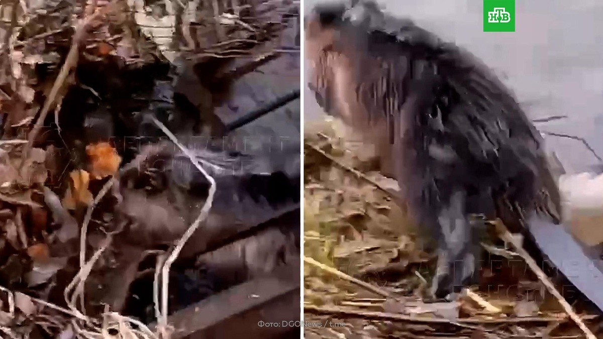 [ Смотреть видео на сайте НТВ ] Спасатели в ТиНАО помогли бобру, застрявшему в ливневке. У пруда в селе Вороново (ТиНАО) в ливневой канализации застрял бобер. Вызволять животное приехали столичные пожарные. Двое спасателей спустились к грызуну, накинули на него полотенце, чтобы не покусал, и помогли протиснуться сквозь прутья к большой воде. Бобер благополучно вернулся в естественную среду обитания. По материалам: телеграм-канал «ЧСтные новости Москвы». [ Смотреть видео на сайте НТВ ]