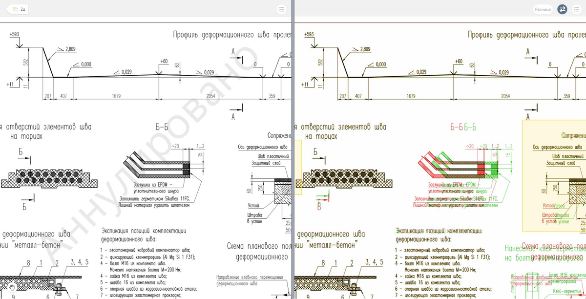 - Уменьшение вероятности ошибок: поскольку инструмент сравнения чертежей работает на основе алгоритмов, вероятность упущения изменений или ошибок значительно снижается по сравнению с ручной проверкой.