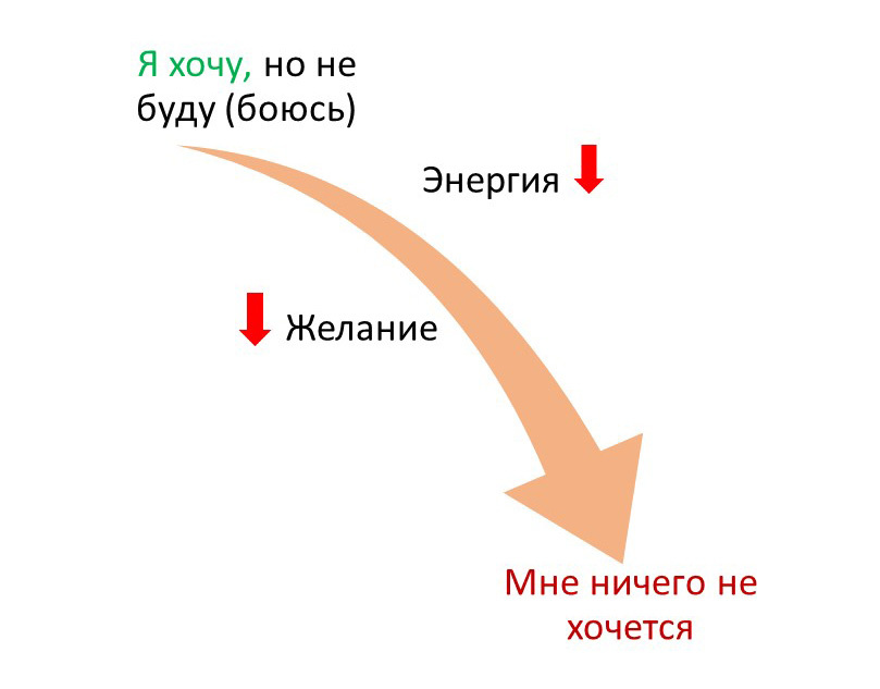 Чем больше мы игнорируем свою потребность, обесцениваем её, тем меньше энергии выделяется. Это приводит к атрофии механизма выделения энергии, а в последствии, к аппатии.