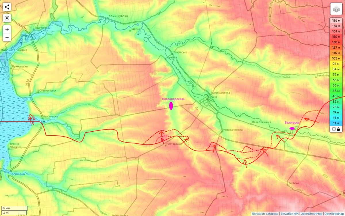 – Со стороны Нестерянки на Новоандреевку – это не только обход Орехова с запада по высотам, но и угроза группировке противника в районе Днепра (Камянск - Степногорск).