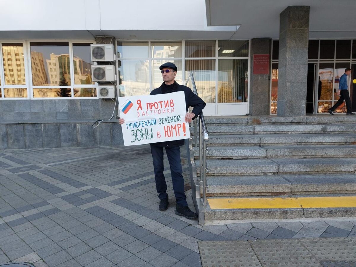 Житель Краснодара вышел к мэрии с пикетом против застройки зелёной зоны в ЮМР