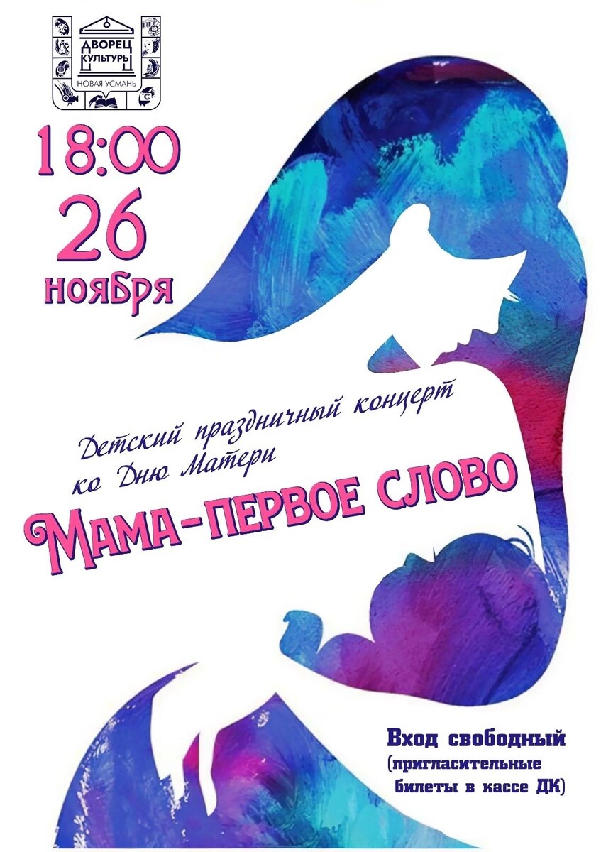26 ноября, в 18:00, Дворец культуры села Новая Усмань распахнет свои двери для самого трогательного и теплого события этого месяца – детского праздничного концерта, посвященного Дню матери, под названием «Мама – первое слово». Это прекрасная возможность выразить свою любовь и благодарность самым дорогим женщинам – мамам! В этот вечер юные таланты Новой Усмани подарят зрителям незабываемое представление, наполненное искренностью, детской непосредственностью и огромной любовью. Программа концерта обещает быть разнообразной и яркой. Маленькие артисты, вложившие всю свою душу в подготовку, представят номера, специально посвященные мамам. Ожидаются выступления вокальных и танцевальных коллективов, возможно, будут показаны театрализованные сценки, и, конечно же, прозвучат стихи и песни, посвященные материнской любви и заботе. Каждый номер – это маленькая история, рассказанная языком музыки, танца и слова, о нежных чувствах детей к своим мамам. Это возможность увидеть, как юные дарова
