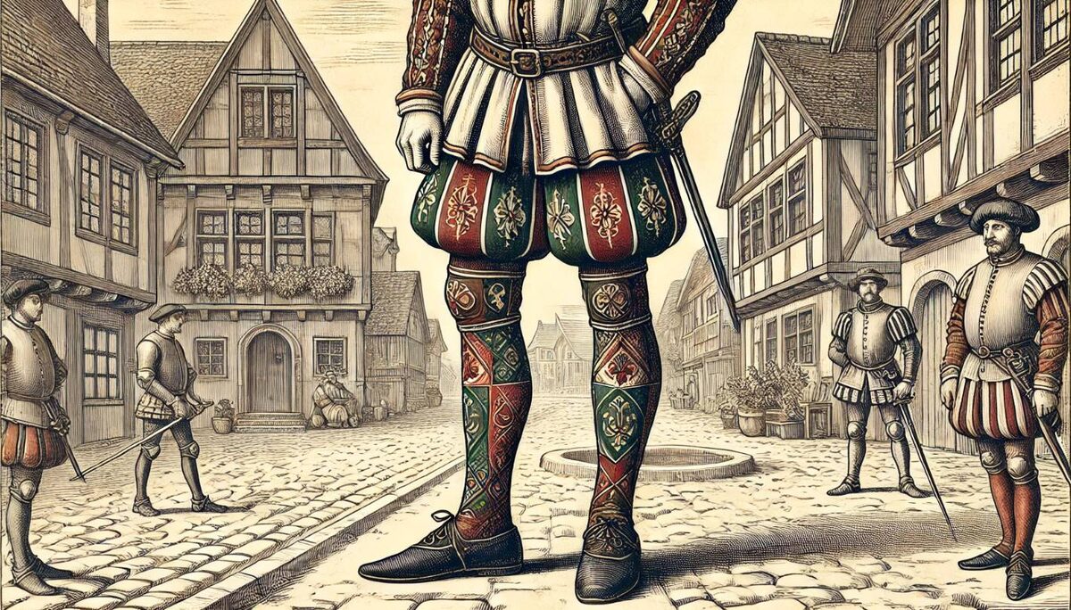 В эпоху Ренессанса европейская мода претерпела значительные изменения. Если Средневековье акцентировало внимание на стройности и удлинённости фигуры, то новая эпоха предпочла массивные формы, подчеркнутые объёмными деталями. Мужской костюм стал состоять из короткого камзола (дублета), подпоясанного ремнём, и более свободных штанов.