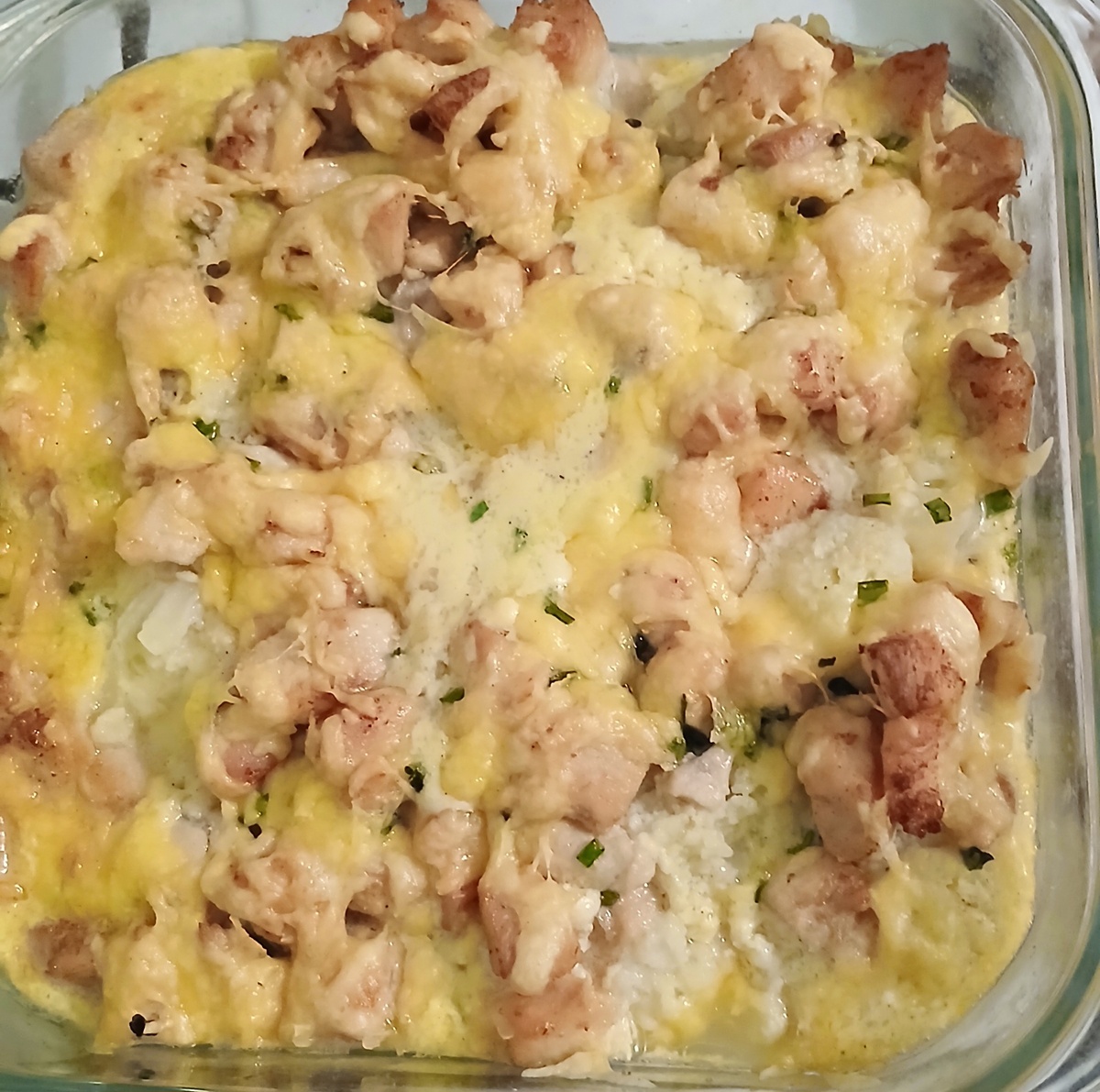 Если вы любите различные запеканки (картофельные, мясные, овощные), то эта, - с цветной капустой, точно вам понравится. Обязательно попробуйте приготовить, ведь это блюдо получается очень нежным и сочным на вкус, при этом очень сытным. Продукты: Для начала куриное филе нарезать на небольшие кусочки. Обжарить на скоровороде почти до готовности. Тем временем цветную капусту отварить в течение 5 минут и откинуть на дуршлаг. Для заливки в миску разбить яйца, немного взбить венчиком, влить молоко, добавить специи, перемешать. Порезать зелень, сыр натереть на крупной терке. В форму выложить цветную капусту, затем куриное филе, зелень, залить яично-молочной смесью, посыпать сверху тертым сыром и отправить в духовку. Запекать при 200 градусах около получаса, ориентируйтесь на свою духовку.