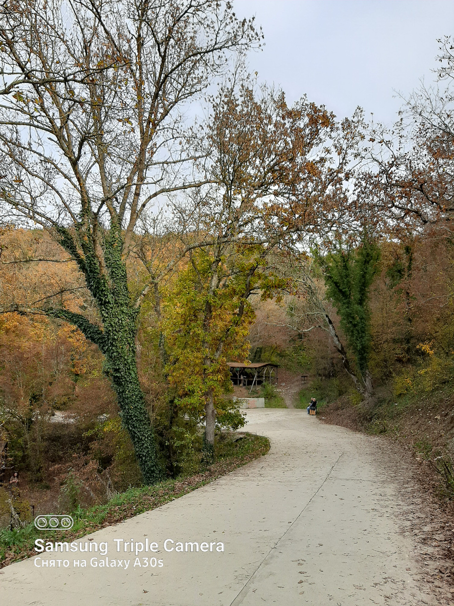 При входе на территорию природоохранной зоны - много сувенирных лавок, киосков с кофе, шашлычная и разные другие заведения. Так что голодным никто не останется.