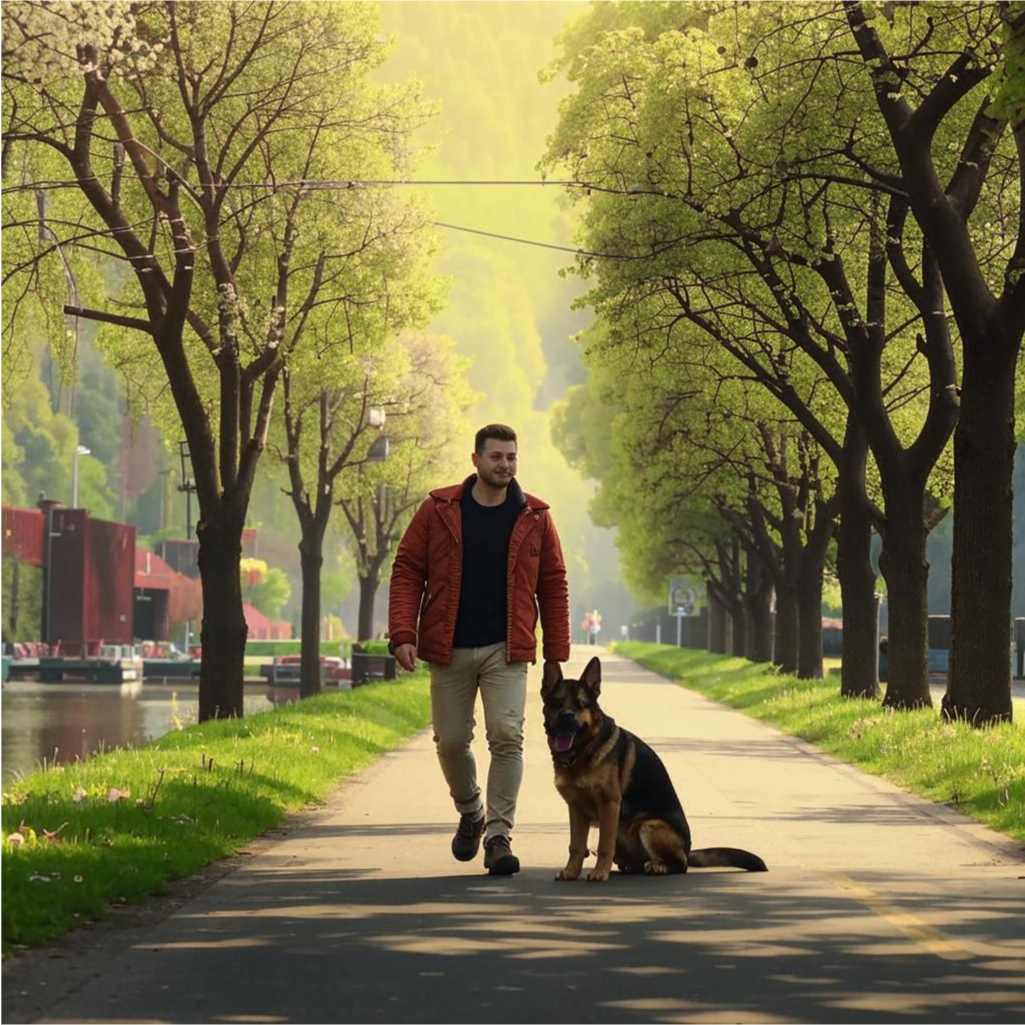 Стояла чудесная майская погода. Радостно галдели птицы, солнечный свет проникал сквозь ветви деревьев. Уже набухла и готовилась распуститься сирень во дворе. В окружении цветущего яблоневого сада виднелся большой красивый дом с балконом и окнами в пол. На террасе дома лежала большая немецкая овчарка. А рядом, на крылечке деловито умывался рыжий полосатый кот с пушистым хвостом.