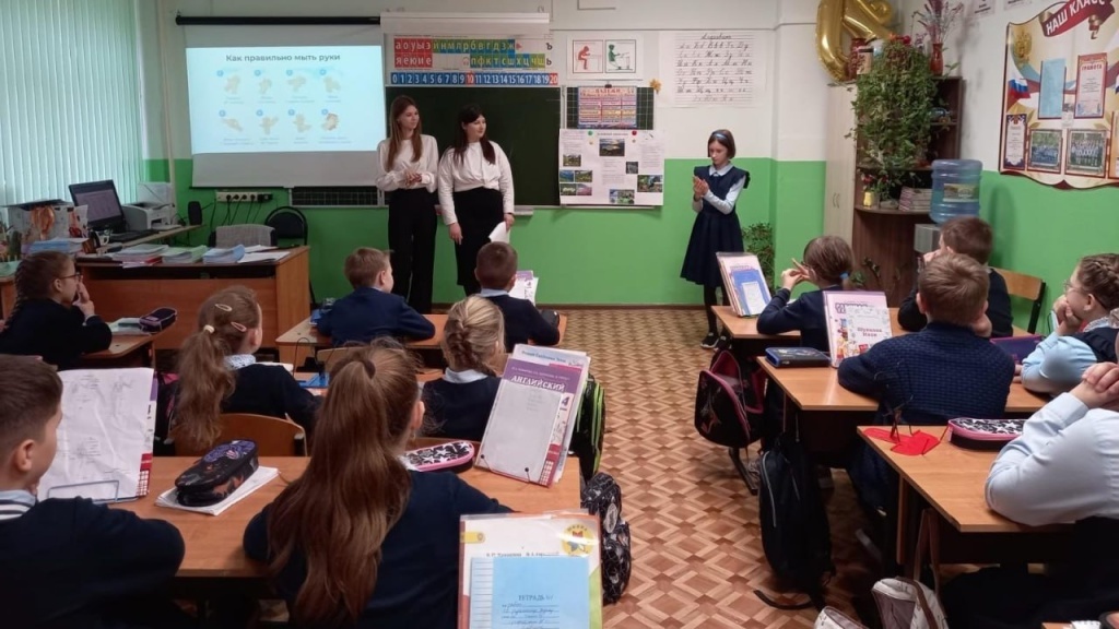 Волонтёры-медики Виктория Сорокина и Анна Николаева организовали для учеников четвёртых классов средней школы № 35 Саранска урок здоровья о правильном рационе и принципах здорового питания. В ходе непосредственного общения дети получили новые знания о правильном питании и способах его корректировки в сторону здорового образа жизни. Они определили, какие продукты стоит включить в рацион, а от каких лучше отказаться. Фото: Паблик ВК СОШ №35 г. Саранска