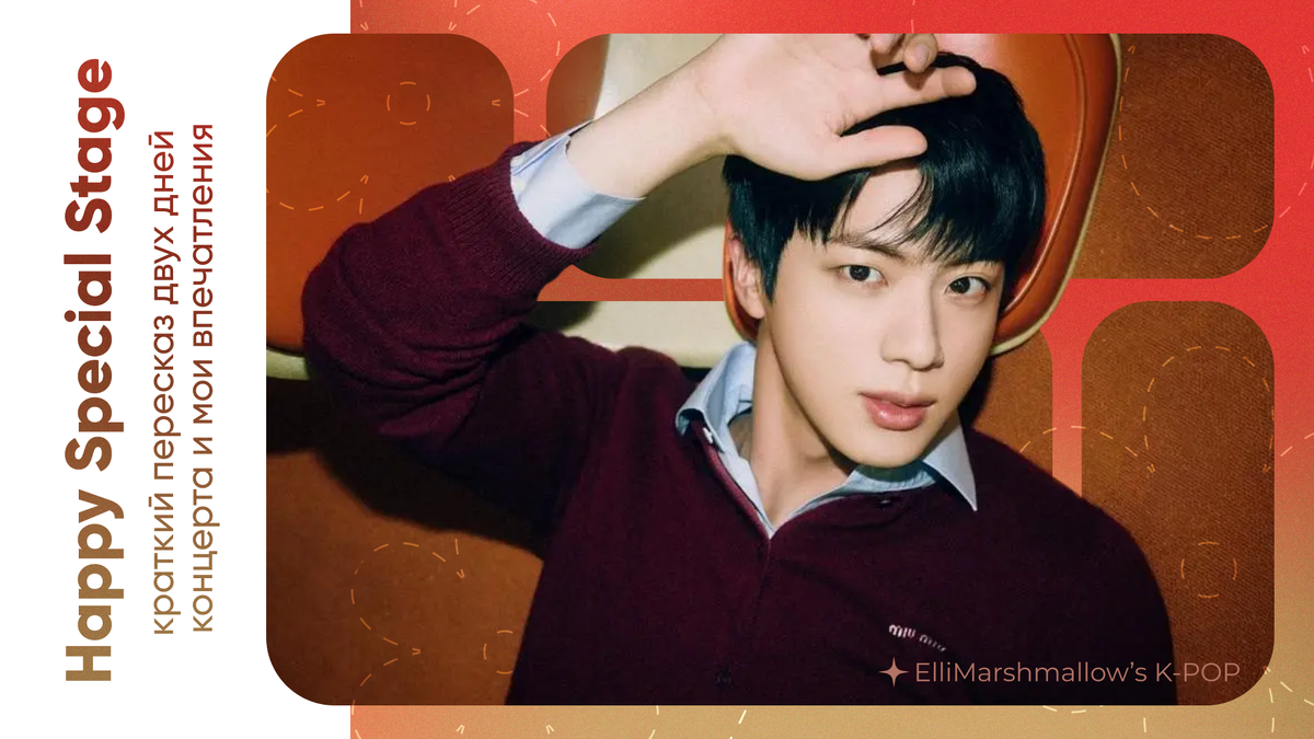 Полностью субтитры со всеми разговорными частями я делать не планирую, все-таки я в первую очередь именно музыкальный переводчик, и подобные объемные проекты даются мне довольно тяжело. Но вы можете найти их по запросу "Jin Happy Special Stage Day 1 или Day 2 русские субтитры" на платформах ВК видео, в тг каналах, на рутубе или где-нибудь еще.