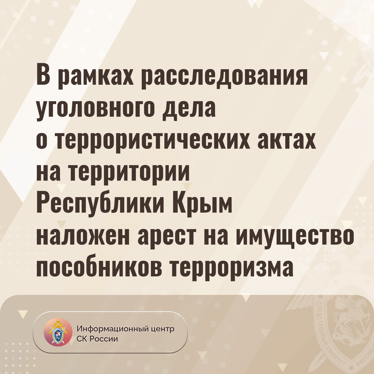В рамках расследования уголовного дела о террористических актах на территории Республики Крым наложен арест на имущество пособников терроризма