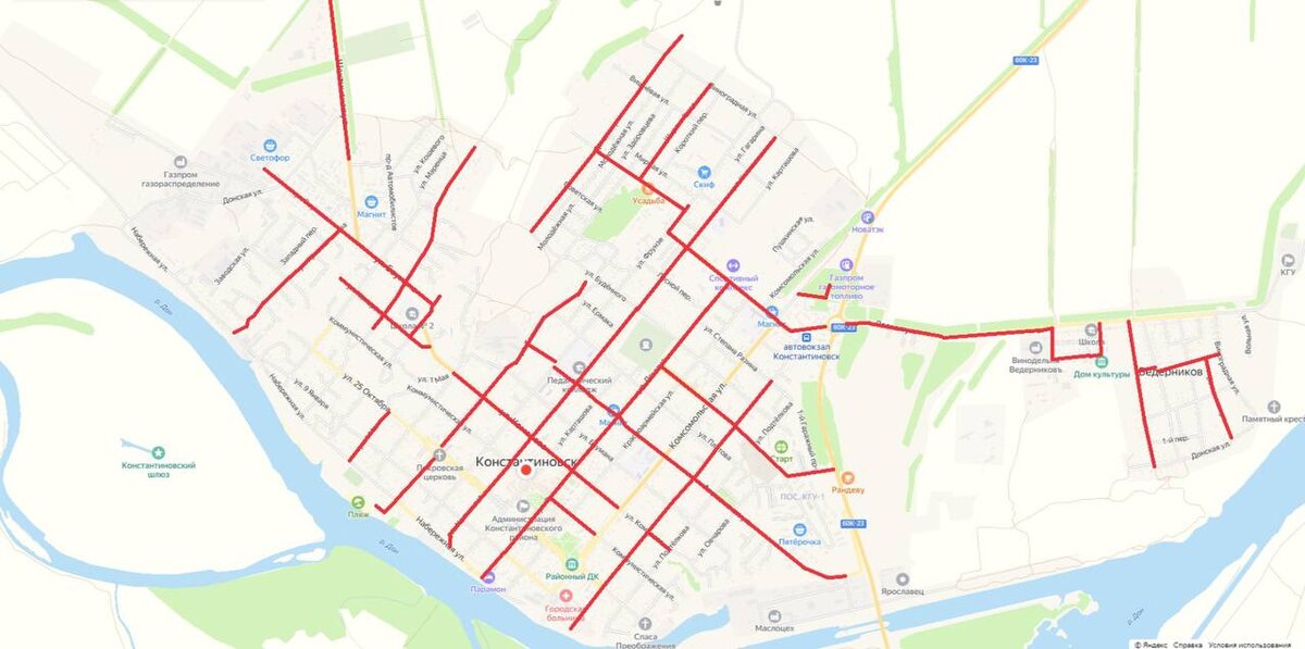 Ростовская область, 18 ноября 2024. DON24.RU. В Константиновске отремонтируют ул. Красноармейскую в 2025 году. Об этом в своем телеграм-канале написал глава администрации района Виталий Дьячкин. «Есть хорошие новости. Сегодня определился подрядчик на ремонт ул. Красноармейской. Работы будут выполняться с марта 2025 года. Ремонтировать будем всю улицу. От 24-й Гвардейской до ул. Набережной. Тротуары, освещение, парковки возле социальных объектов. Все это появится уже в следующем году!» – написал Виталий Дьячкин. Он также поделился достижениями района и представил карту, на которой нанесены дороги, отремонтированные за последние два года. Фото: телеграм-канал Виталия Дьячкина «По району количество отремонтированных дорог не сильно меньше», – добавил он. Ранее сообщалось, что в Ростовской области по нацпроекту «Безопасные качественные дороги» в этом году приведено в нормативное состояние свыше 280 км дорожной сети регионального и местного значения.