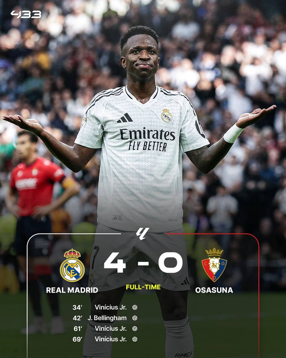 Реал прерывает серию из двух поражений подряд. Королевский клуб обыграл Осасуну на Сантьяго Бернабеу со счётом 4:0.
