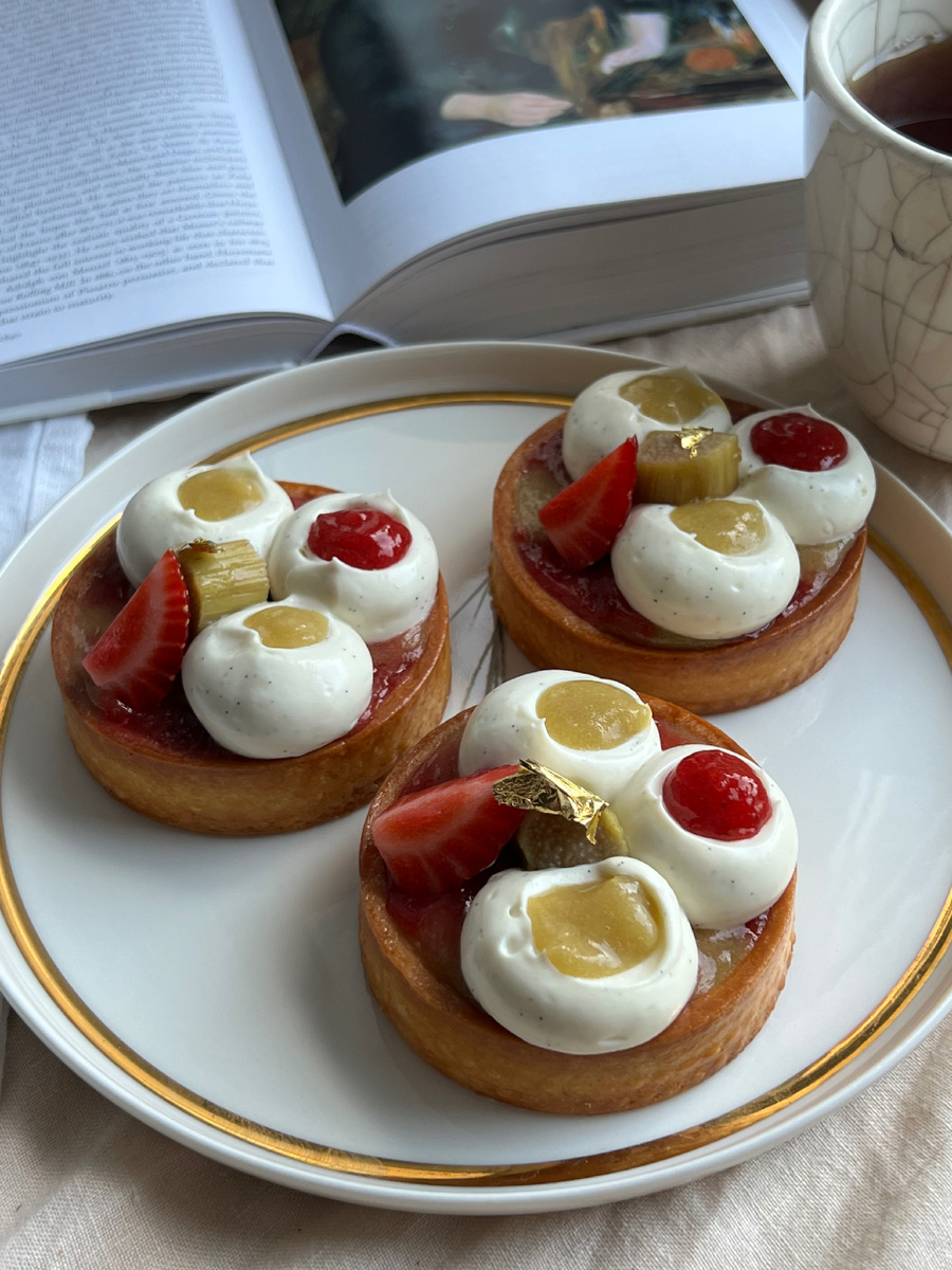 Очень вкусный десерт на весну и начало лета Ингредиенты (на 6 штук по 8х2): Песочное тесто ⠀ 1. Смешайте муку, миндальную муку, пудру и соль, порубите масло на кубики, добавьте в смесь и руками доведите до подобия хлебных крошек, добавьте перемешанное яйцо, замесите, переложите на пергамент, сверху еще один, раскатайте до 3 мм, уберите в холодильник на 1-2 часа, кольцом сделайте основу тарта, переложите на коврик (пергамент) кольцо и в него основу, если выпало. С помощью линейки и ножа (лучше для пиццы) вырежьте стенки тарта, приклейте ко дну и стенкам, ножом отрежьте выпирающее. Уберите в морозильник на 20 минут. Разогрейте духовку до 165 С, пеките 15 минут. Смешайте 20 гр желтка и 5 гр сливок 30-35%, обмажьте тарты внутри и и стенки, пеките 5 минут. ⠀ Миндальный крем ⠀ 1. Смешайте мягкое масло с пудрой, добавьте перемешанное яйцо, перемешайте, муку, перемешайте, выложите на 1/2 тарта, вставьте слайсы клубники, пеките еще минут 10-15. ⠀ Ванильный ганаш ⠀ 1. Залейте желатин 10 гр ледя