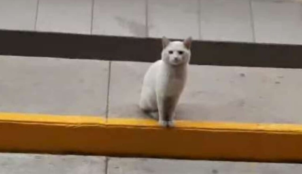Там объявился странный посетитель – белый кот-попрошайка.
