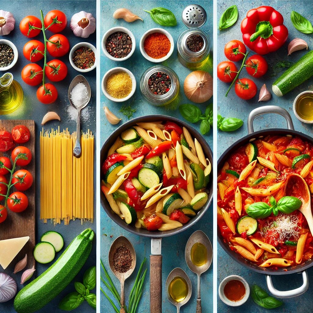 Итальянская кухня всегда славилась своей простотой и разнообразием. Паста с томатным соусом — это классика, известная по всему миру. Но я решил добавить больше свежих овощей, чтобы сделать блюдо ещё полезнее и ярче. Итальянцы часто используют сезонные овощи в своих блюдах, что придаёт пище особый аромат и насыщенность. Этот рецепт — моя интерпретация классического блюда, обогащённого свежими ингредиентами, которые сделают его идеальным для тех, кто придерживается здорового питания.