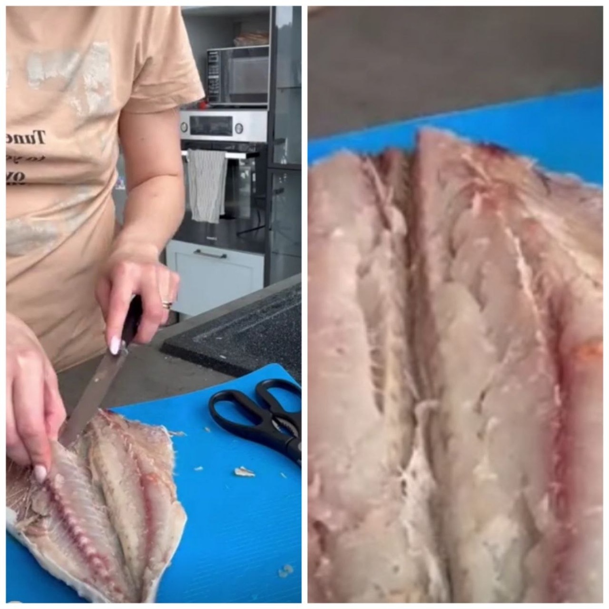 Смотреть видео Ингредиенты: Цельная рыба Соль, перец, майонез для маринада Масло для смазывания пергамента Процесс приготовления: •почистить рыбу, убрать хвост, голову и боковые части •положив шкуркой вверх, при помощи ножниц нарезать на кусочки и перевернуть их мякотью вверх •посолить и поперчить, слегка смазать майонезом (либо использовать свой вариант) - и оставляем на 15 минут •духовка разогрета до 180° - отправляем рыбу, уже уложенную в специальную форму с пергаментом, в духовку на 20 мин. Если передержать, получится сухая. Смотреть видео Хочу еще рассказать, как при наличии мангала и углей сделать рыбу копченую. Для горячего копчения продаются в магазинах "коптильни", которые состоят из похожих на фольгу формы с дырочками, поддона без дырочек и прилагается щепа для самого копчения. Совет: в нижний контейнер кладем щепу, но затем добавляем воды, это обязательно, чтобы не сгорело всё. Я подготовила рыбу нужного размера, посолила ее, оставила на несколько часов (время засолк