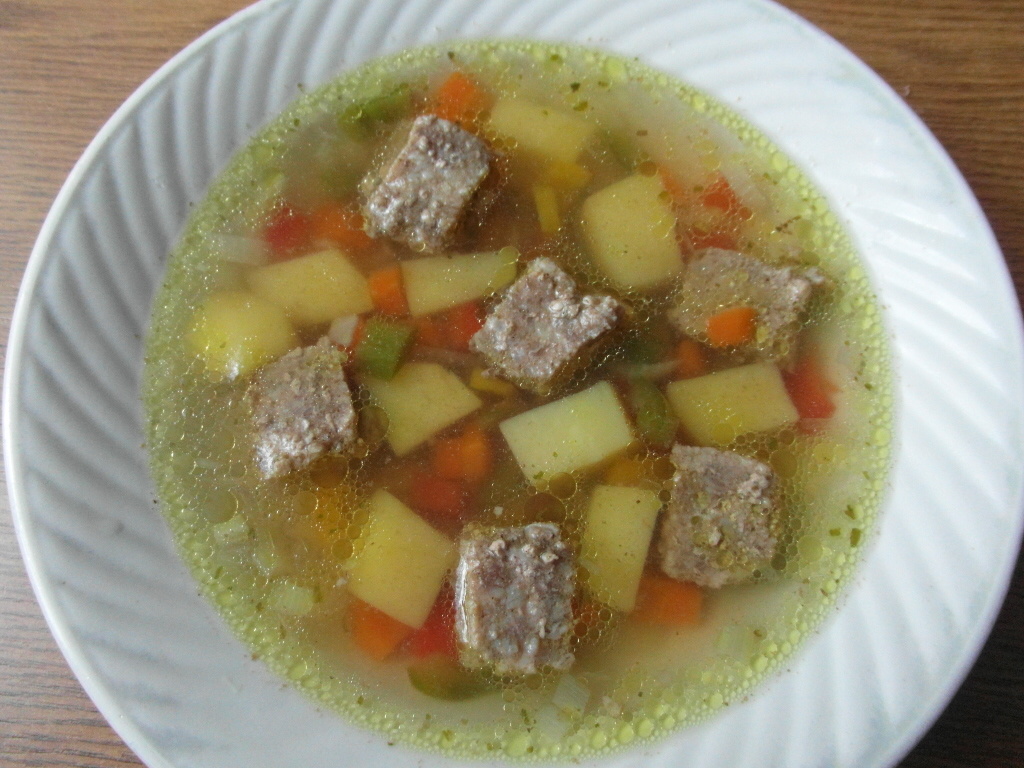 -как бульон с фрикадельками закипит, делать тише огонь и пока наваривается бульон, можно идти чистить овощи.