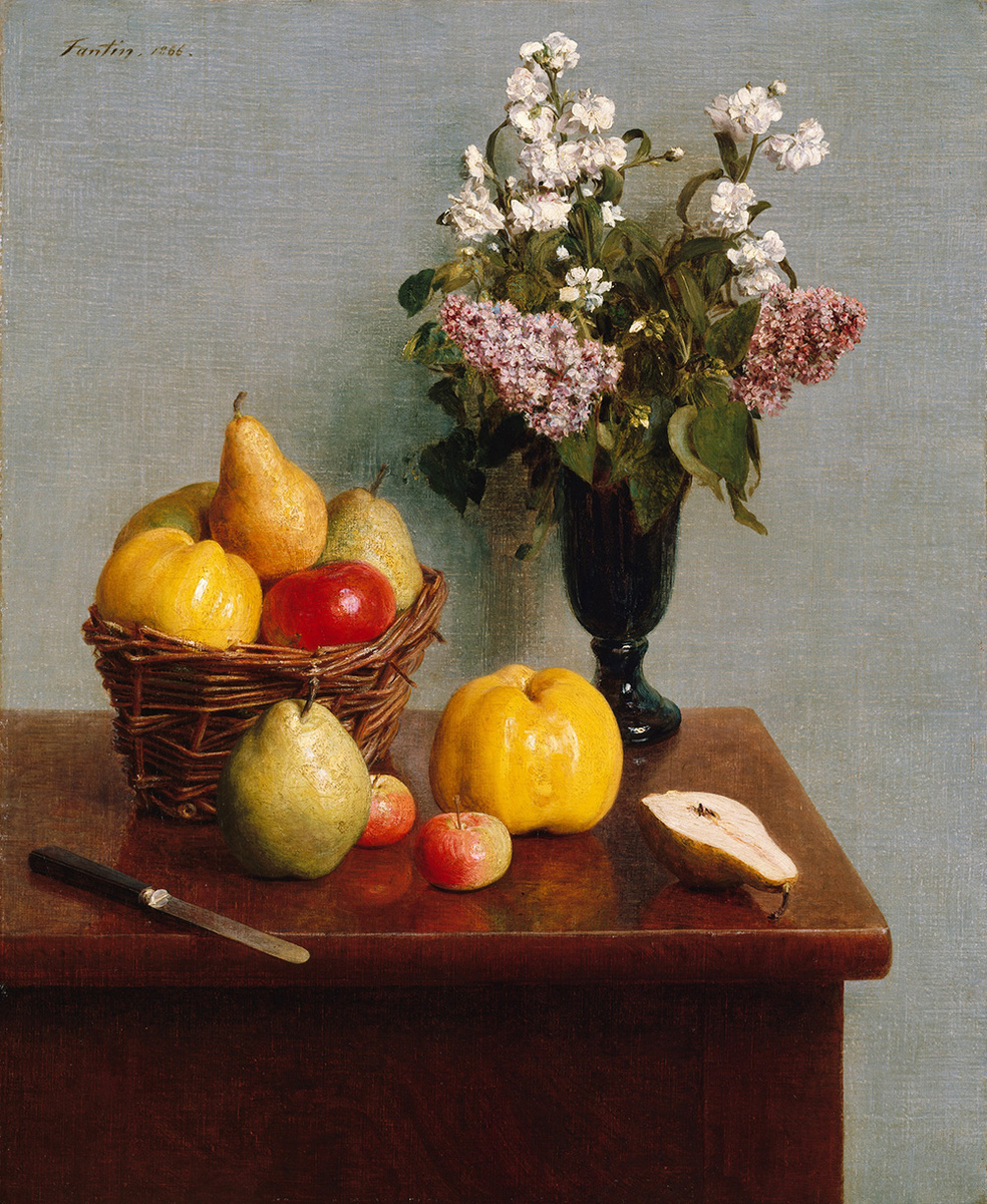 Анри Фантен-Латур «Натюрморт с цветами и фруктами», 1866 г.