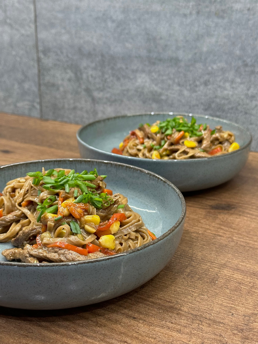 Что нам для этого понадобится: - соба гречневая - говядина - перец болгарский - чеснок - перчик чили - смесь мексиканская - устричный соус - терияки соус - масло растительное - соль/перец/специи Что мы с этим делаем: В сковородку добавляем масло, говядину (нарезать можно так, как вам больше нравится), чеснок, перчик чили, болгарский перец и мексиканскую смесь. Солим/перчим и добавляем специи. Хорошо обжариваем до готовности. Добавляем соусы устричный и терияки. Варим нашу собу и добавляем её к говядине с овощами, всё хорошо перемешиваем. Готово! Выкладываем на тарелочку и посыпаем зеленью 🍃🥬 Приятного аппетита 🤎 #васинаеда #васинакухня