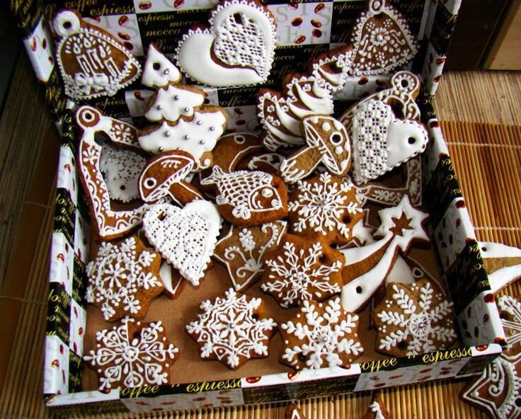 Во многих странах Европы Рождество немыслимо без имбирных пряников. Эта традиция постепенно распространилась и на Россию, а также на другие страны СНГ. В моей семье уже несколько лет существует традиция готовить имбирные пряники на Новый год. У меня даже есть проверенный рецепт, который передаётся из поколения в поколение. Возможно, вы тоже захотите попробовать приготовить эти ароматные и вкусные пряники. Растопите масло, смешайте с мёдом, яйцами и сахаром. Добавьте все сухие ингредиенты из рецепта и замесите тесто. Уберите тесто в плёнке в холодильник на 30 минут. После того как тесто проведёт 30 минут в холодильнике, достаньте его и раскатайте скалкой до толщины 0,5–0,7 см. Вырежьте формочками пряники из теста. Аккуратно уложите их на противень, застеленный пергаментной бумагой. Выпекайте пряники при 180 градусах в течение 20-25 минут. Достаньте противень из духовки и дайте пряникам остыть. Украсьте их по вашему вкусу: глазурью, сахарной пудрой, орехами или другими украшениями. На