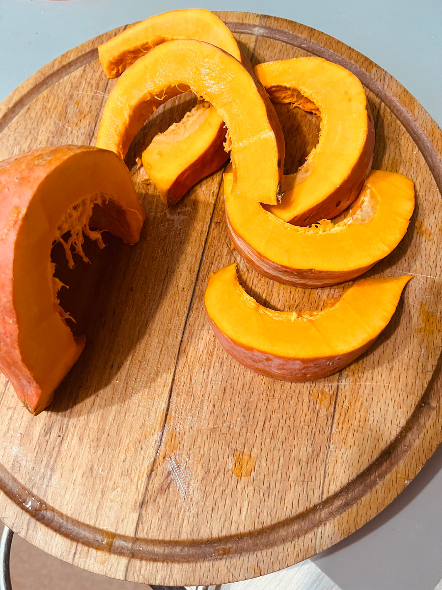 Всем доброго дня. Вернувшись домой, я пошла в магазин за продуктами и увидела на полках тыкву, маленькую, такую ярко оранжевую, что решила купить. В Москве то с сыном все больше мясо ели, вот меня теперь на овощи и потянуло. Принесла домой, разрезала, она такая красивая, очень насыщенный цвет был, телефон даже не передает ее реальный цвет Ну и я третью часть от нее решила попробовать запечь в микроволновке. Я обычно просто отваривала в небольшом количестве воды с сахаром, а тут захотела запечь, но делать в духовке- времени надо значительно больше потратить. И я подумала, посмотрю как в микроволновке получится. Взяла немного, даже шкурку не очищала, так на кусочки порезала и поставила. Всего на четыре минуты, и она стала мягкая. Кожицу очистила просто столовой ложкой Очень вкусная она оказалась, съела ее со сметаной и урбечем, еще дагестанский у меня есть, не весь съела 😊 А на следующий день решила приготовить оставшуюся, этим же способом готовила, только ела уже со сливками и вял