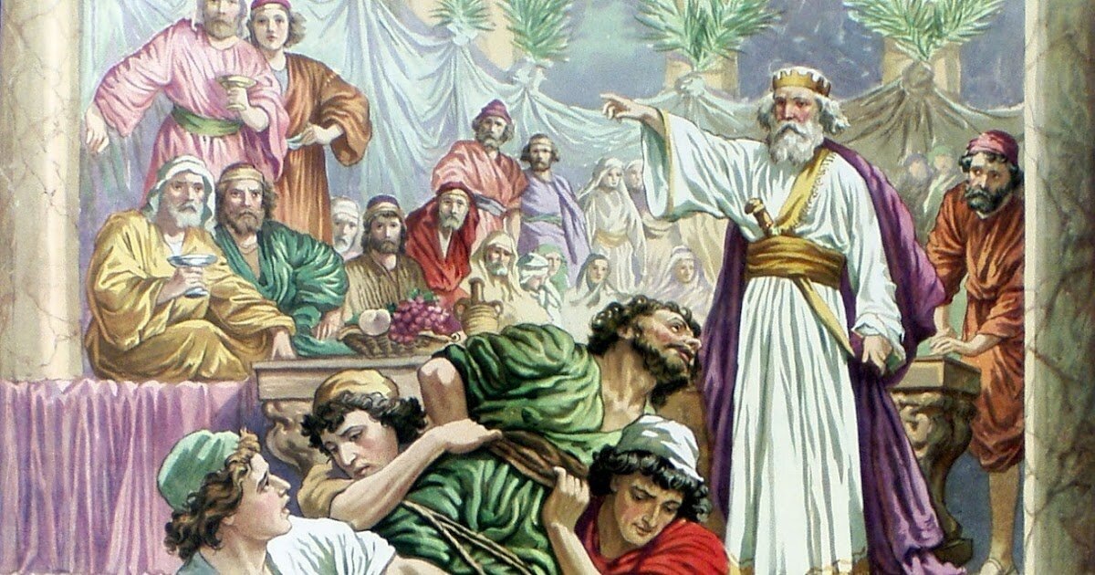 21 И, возвратившись, раб тот донёс о сём господину своему. Тогда, разгневавшись, хозяин дома сказал рабу своему: «пойди скорее по улицам и переулкам города и приведи сюда нищих, увечных, хромых и слепых».