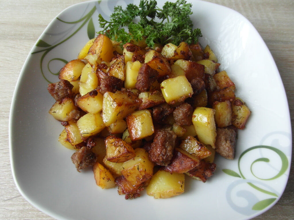 Всем привет. Побалуемся картошечкой? Обжарила квадратные фрикадельки. (про них было описано в предыдущей статье) Добавила картофель кубиками. Жарила на большом огне и готово. Важно ! Готовить в большой посуде и часто не перемешивать... ОПРОБОВАНО-ОДОБРЕНО Всем вкусных экспериментов. #вторыеблюда ОДИН КЛИК и смайлик у меня. А вам большое спасибо.