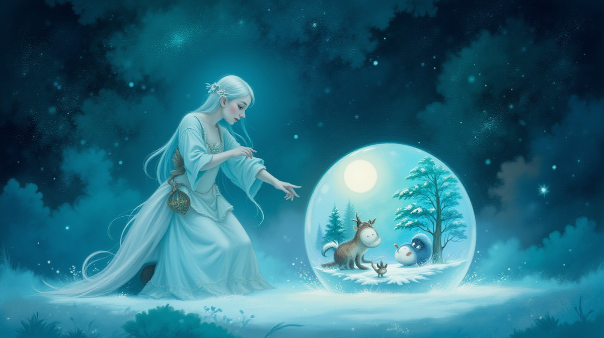 В одном далеком селе, окруженном высокими горами, жила-была Снегурочка – красавица с белоснежной кожей и волосами, как снег. Она была дочерью зимы, и каждый год, когда морозы приходили, она выходила на улицу, чтобы порадовать людей своим танцем. Однажды, когда Снегурочка гуляла по лесу, она наткнулась на старую, покрытую мхом избушку. Любопытство взяло верх, и она вошла внутрь. В избушке было темно и тихо, но вдруг она заметила на столе магический шар, который светился мягким голубым светом. Снегурочка подошла ближе и, прикоснувшись к шару, увидела в нем удивительные картины: снежные поля, сверкающие под луной, и леса, полные волшебных существ. Шар заговорил нежным голосом: «Я – хранитель зимних чудес. Если ты освободишь меня от заклятия, я исполню твое самое заветное желание». Снегурочка, полная решимости, спросила, как она может помочь. Шар ответил, что его заколдовала завистливая ведьма, и только истинная доброта и смелость могут снять заклятие. Снегурочка решила отправиться в путь