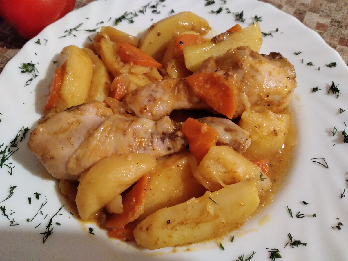Невероятно вкусная куриная голень с овощами. Все дело в разных маринадах