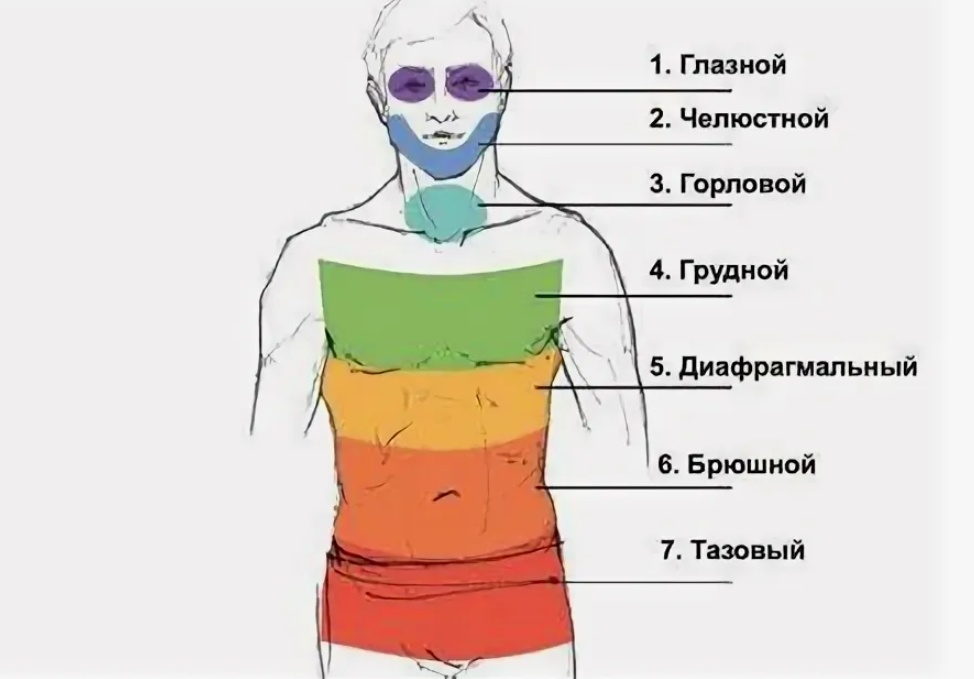 - Грудной пояс (грудь, руки, плечи): сердечные чувства, любовь, возможность действовать через руки и сердце. Блок связан с подавлением глубоких сердечных чувств, контролем, ответственностью.